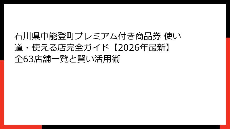 - 石川県中能登町プレミアム付き商品券の賢い使い道10選!日常の買い物から地元グルメ・観光活用まで
