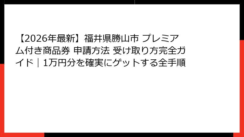 - 福井県勝山市 プレミアム付き商品券の申請方法を完全ガイド【2026年最新手順】