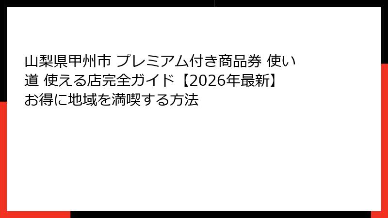 このまとめで、山梨県甲州市 プレミアム付き商品券のすべてを振り返りました。