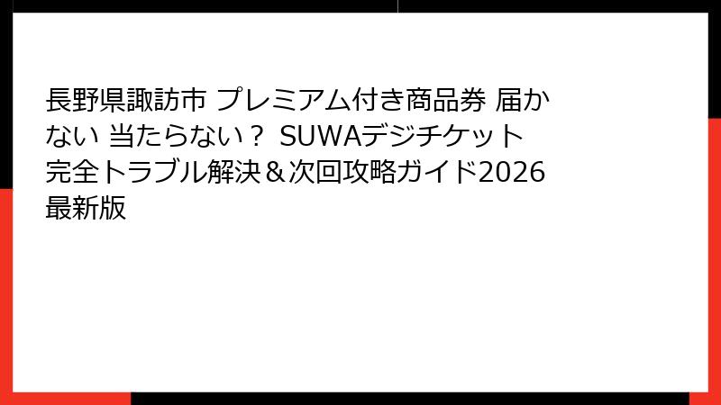 - 長野県諏訪市 プレミアム付き商品券「SUWAデジチケット」が届かない・当たらない?2025-2026年の実情を徹底解説