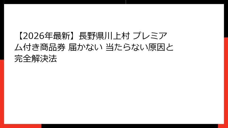 - 長野県川上村 プレミアム付き商品券 届かない・当たらないトラブルを完全回避して安心活用しよう
