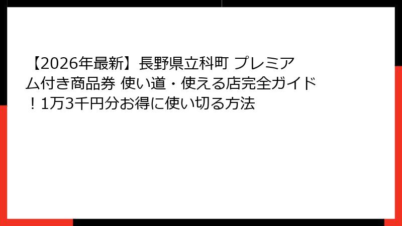 - 長野県立科町プレミアム付き商品券をお得に使い切るための実践Tips15選