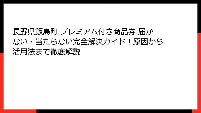 - 長野県飯島町プレミアム付き商品券が届かない・当たらない?原因と解決策を徹底解説