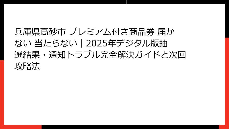 この移行期特有のトラブルが、「兵庫県高砂市 プレミアム付き商品券 届かない 当たらない」という検索キーワードを生み出す背景となったのです。