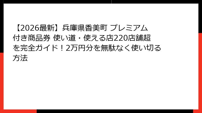 - 香美町プレミアム付き商品券を最大限お得に使うコツとよくある質問Q&A