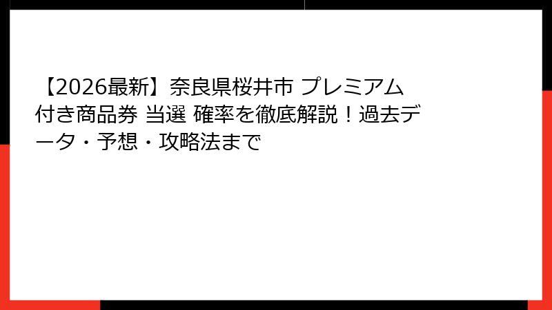 桜井市の事業は抽選制が主流で、応募数が発行数を上回るため、確率が低くなる傾向があります。