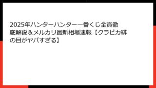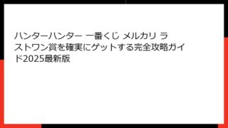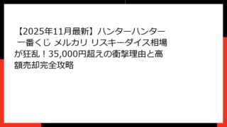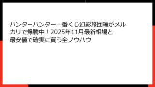 【2025年最新】ハンターハンター一番くじ「幻影旅団編」がメルカリで争奪戦!即完売の理由と全体概要 発売からわずか3日でメルカリ相場が狂った瞬間 2025年11月22日(土)朝7時の地獄絵図 2025年11月22日、土曜日。 朝6時30分に...
