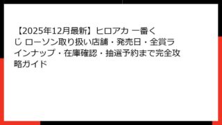 一番くじ(ヒロアカ) 【2025年12月最新】ヒロアカ 一番くじ ローソン取り扱い店舗・発売日・全賞ラインナップ・在庫確認・抽選予約まで完全攻略ガイド 【2025年最新】ヒロアカ×ローソン一番くじがヤバすぎる!発売日・価格・取り扱い状況まとめ ヒロアカ一番くじがローソンで2025年12月6日(土)より順次発売開始されることが正式に決定しました! 「僕のヒーローアカデミア」の最新一番くじ「─... 2025.12.02 一番くじ(ヒロアカ)