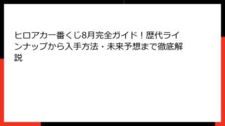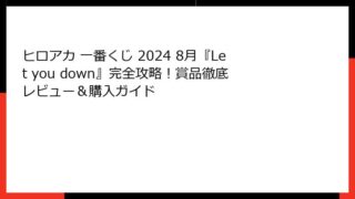 ヒロアカ 一番くじ 2024 8月最新情報!『Let you down』シリーズの全貌を大公開 皆さん、こんにちは!アニメやマンガが大好きな方々にとって、2024年は特に熱い年になりましたね。 特に、『僕のヒーローアカデミア』、通称ヒロアカ...