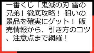 【一番くじ 鬼滅の刃 雷の兄弟】完全攻略! 狙いの景品を確実にゲットするための徹底分析 一番くじ「鬼滅の刃 雷の兄弟」に挑戦したいけど、どうすれば欲しい景品をゲットできるのか悩んでいませんか? この記事では、一番くじを攻略するための様々な情...
