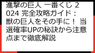 【地ならし級の衝撃!】進撃の巨人 一番くじ 地ならし:全情報と入手への道 この記事では、「進撃の巨人 一番くじ 地ならし」に関する情報を徹底的に解説します。 あなたを満足させるべく、一番くじの全貌、魅力、そして確実に手に入れるための方法を、...