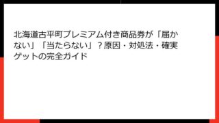 北海道古平町のプレミアム付き商品券が「届かない」「当たらない」?住民の悩みを解決する完全ガイド 北海道の小さな町、古平町で話題となっているプレミアム付き商品券。 地域経済を活性化させるためのこの施策は、多くの住民にとって魅力的な存在ですが、...