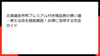 北海道余市町プレミアム付き商品券とは?概要と人気の秘密 北海道余市町プレミアム付き商品券の当選確率が気になる皆さん、こんにちは。 この記事では、北海道余市町のプレミアム付き商品券について、徹底的に掘り下げてご紹介します。 北海道余市町は、豊...