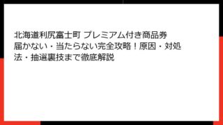 北海道利尻富士町のプレミアム付き商品券とは?当選確率の基礎知識と魅力 北海道の最北端に位置する利尻富士町は、美しい自然景観と豊かな海産物で知られる小さな町です。 この町が発行するプレミアム付き商品券は、地域経済の活性化を目的とした魅力的な制...