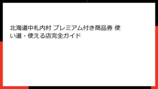 北海道中札内村プレミアム付き商品券の魅力と当選確率の基礎知識 北海道中札内村プレミアム付き商品券は、地方自治体が推進する経済活性化策として注目を集めている特別な商品券です。 この商品券は、購入額に対してプレミアム分が上乗せされるため、利用者...