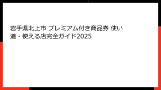 岩手県北上市プレミアム付き商品券とは?2026年最新の基本情報と魅力まとめ 岩手県北上市 プレミアム付き商品券 当選 確率が気になっている方、必見です。 2026年1月現在、北上市で話題となっている「まちなかプレミアム商品券2025」が利用...