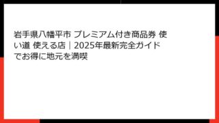 岩手県八幡平市プレミアム付き商品券とは?人気の秘密と当選確率の重要性 プレミアム付き商品券の基礎知識:八幡平市の独自施策を紐解く 岩手県八幡平市で発行されるプレミアム付き商品券は、地元経済の活性化を目的とした魅力的な制度です。 この商品券は...