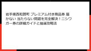 岩手県西和賀町のプレミアム付き商品券が届かない・当たらない問題とは?原因と解決策を徹底解説 岩手県西和賀町のプレミアム付き商品券は、地域経済を活性化させるための重要な施策として、多くの住民に注目されています。 しかし、最近になって「岩手県西...