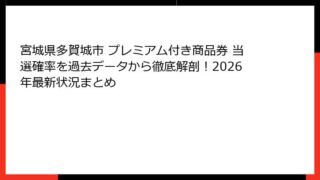 宮城県多賀城市プレミアム付き商品券の当選確率はどれくらい?2026年最新情報で徹底解説 物価高騰が続く2026年現在、宮城県多賀城市の住民にとって「プレミアム付き商品券」は、かつての生活を支える最強の味方として今でも語り継がれている存在です...
