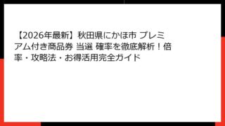 秋田県にかほ市プレミアム付き商品券の概要と魅力~なぜ人気で当選確率が注目されるのか? 秋田県にかほ市プレミアム付き商品券は、地域住民の消費を促進し、地元経済を活性化させるための画期的な取り組みとして、毎年大きな注目を集めています。 この商品...