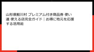 山形県鮭川村プレミアム付き商品券の当選確率を徹底解説!地域活性化のチャンスを掴むために 山形県鮭川村プレミアム付き商品券の当選確率について、皆さんが気になる情報を徹底的に掘り下げてお届けします。 この記事では、山形県鮭川村で実施されているプ...