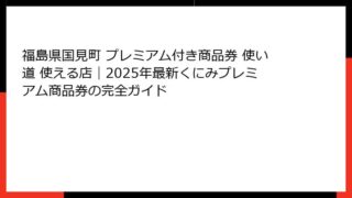 福島県国見町プレミアム付き商品券の概要とその魅力~当選確率が気になる理由~ 福島県国見町のプレミアム付き商品券は、地元住民の生活を支え、町内経済を活性化させる重要な施策として、多くの注目を集めています。 特に、当選確率がどれくらいなのかとい...