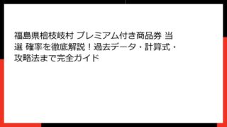 福島県檜枝岐村のプレミアム付き商品券とは?当選確率の基礎知識 福島県檜枝岐村は、自然豊かな山村として知られ、プレミアム付き商品券が地域振興の重要なツールとなっています。 この記事では、まず檜枝岐村のプレミアム付き商品券の概要を詳しく解説し、...