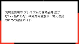 茨城県鹿嶋市のプレミアム付き商品券とは?概要と最新情報 プレミアム付き商品券の基本概念と全国的な広がり プレミアム付き商品券の定義と主な目的 プレミアム付き商品券とは、自治体が発行する地域限定の商品券で、購入金額よりも高い利用価値が付与され...
