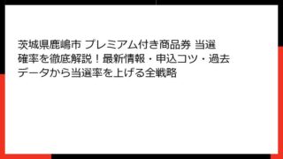 茨城県鹿嶋市 プレミアム付き商品券 茨城県鹿嶋市 プレミアム付き商品券 当選確率を徹底解説!最新情報・申込コツ・過去データから当選率を上げる全戦略