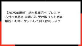 栃木県鹿沼市プレミアム付き商品券とは?当選確率を徹底解説! 栃木県鹿沼市で毎年注目を集めているプレミアム付き商品券は、地域経済の活性化を目的とした大変魅力的な制度です。 特に、令和7年度(2025年)の「かぬまプレミアム付ニコニコ商品券」は...