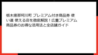 栃木県那珂川町プレミアム付き商品券の基本概要と魅力 – 当選確率を狙う前に知っておきたい基礎知識 栃木県那珂川町プレミアム付き商品券は、地域経済の活性化を目的とした大変お得な施策です。 例えば、1冊1万円で購入すれば、なんと13,000円分...