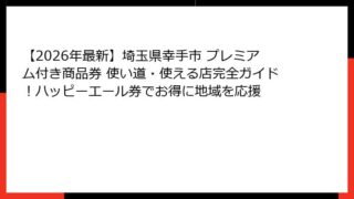 幸手市プレミアム付き商品券とは?地域経済を支えるお得な仕組みを解説 幸手市のプレミアム付き商品券は、地域住民の生活を豊かにし、地元経済の活性化を図るための画期的な取り組みとして注目を集めています。 この商品券は、単なる割引券ではなく、購入額...