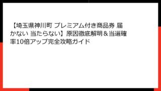埼玉県神川町のプレミアム付き商品券とは?当選確率の基礎知識と魅力 埼玉県神川町のプレミアム付き商品券は、地域経済の活性化と住民の家計支援を目的とした魅力的な制度です。 この商品券は、町内で利用できる金券として発行され、購入額に対して一定のプ...