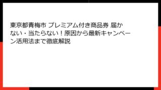 東京都青梅市 プレミアム付き商品券とは?当選確率の重要性と概要 東京都青梅市 プレミアム付き商品券は、地元経済の活性化を目的とした人気の施策として、多くの住民から注目を集めています。 この商品券は、通常の購入額に対してプレミアム分が上乗せさ...