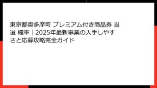 東京都奥多摩町 プレミアム付き商品券 東京都奥多摩町 プレミアム付き商品券 当選 確率|2025年最新事業の入手しやすさと応募攻略完全ガイド