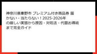 神奈川県秦野市のプレミアム付き商品券とは?当選確率を知って賢く活用しよう 神奈川県秦野市では、住民の生活支援と地元経済の活性化を目的としたプレミアム付き商品券が定期的に発行されており、2026年現在も注目を集めています。 このプレミアム付き...