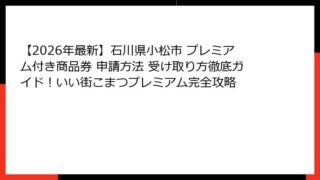 石川県小松市のプレミアム付き商品券とは?当選確率の基礎知識と人気の理由 石川県小松市のプレミアム付き商品券は、地元経済の活性化を目的とした魅力的な施策として、多くの市民から注目を集めています。 特に、2026年現在、石川県小松市 プレミアム...
