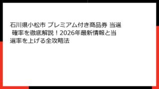 石川県小松市 プレミアム付き商品券 石川県小松市 プレミアム付き商品券 当選 確率を徹底解説!2026年最新情報と当選率を上げる全攻略法
