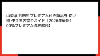 山梨県甲府市プレミアム付き商品券とは?当選確率を高めるための基礎知識 山梨県甲府市プレミアム付き商品券は、市民の生活を支える重要な施策として注目を集めています。 この商品券は、物価高騰対策の一環として発行され、購入額以上の価値を提供すること...