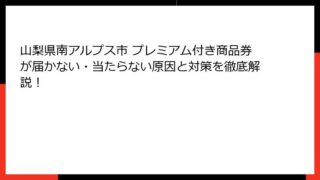 山梨県南アルプス市のプレミアム付き商品券とは?当選確率の基礎知識と魅力徹底ガイド 山梨県南アルプス市でプレミアム付き商品券の抽選に挑戦したいけど、当選確率が気になる…そんなあなたへ!この記事では、山梨県南アルプス市のプレミアム付き商品券につ...