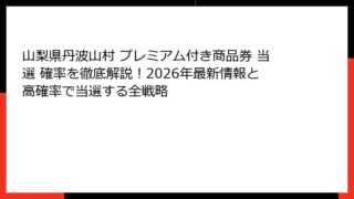 山梨県丹波山村 プレミアム付き商品券 山梨県丹波山村 プレミアム付き商品券 当選 確率を徹底解説!2026年最新情報と高確率で当選する全戦略