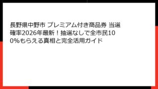 長野県中野市 プレミアム付き商品券 当選確率2026年最新!抽選なしで全市民100%ゲット 長野県中野市プレミアム付き商品券 当選確率の核心を最初にズバリ解説 2026年2月現在、当選確率は実質100%である理由 長野県中野市で実施されてい...