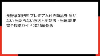 長野県茅野市プレミアム付き商品券の当選確率を徹底解説!地元住民必見の経済支援策 長野県茅野市では、毎年恒例のプレミアム付き商品券が地域経済の活性化を目的に発行されており、特に2026年の最新版ではプレミアム率が過去最高水準に達しています。 ...