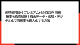 長野県阿智村 プレミアム付き商品券 長野県阿智村 プレミアム付き商品券 当選 確率を徹底解説!過去データ・戦略・デジタル化で当選率を最大化する方法