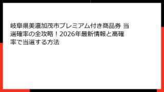 岐阜県美濃加茂市 プレミアム付き商品券 岐阜県美濃加茂市プレミアム付き商品券 当選確率の全攻略!2026年最新情報と高確率で当選する方法