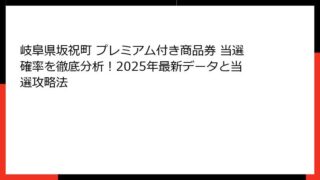 岐阜県坂祝町 プレミアム付き商品券 岐阜県坂祝町 プレミアム付き商品券 当選確率を徹底分析!2025年最新データと当選攻略法