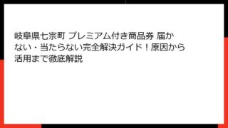 岐阜県七宗町のプレミアム付き商品券とは?当選確率の高い地元活性化ツールの全貌 岐阜県七宗町は、自然豊かな山里の風景が広がる小さな町として知られ、プレミアム付き商品券が地元経済の活性化に大きく寄与しています。 この記事では、岐阜県七宗町のプレ...