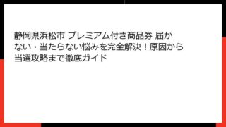 静岡県浜松市のプレミアム付き商品券とは?当選確率の基礎知識と人気の理由 静岡県浜松市のプレミアム付き商品券は、市民の生活を支える重要な経済支援策として注目を集めています。 この商品券は、物価高騰や経済変動に対応するための施策として発行されて...