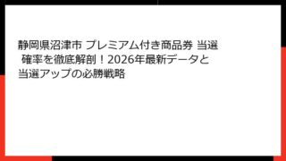 静岡県沼津市 プレミアム付き商品券 静岡県沼津市 プレミアム付き商品券 当選 確率を徹底解剖!2026年最新データと当選アップの必勝戦略
