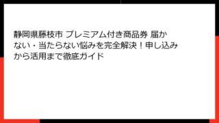 静岡県藤枝市プレミアム付き商品券とは?当選確率を知ることでお得にゲットしよう! 静岡県藤枝市では、地域経済の活性化と市民生活の支援を目的としたプレミアム付き商品券が定期的に発行されており、多くの住民から注目を集めています。 この商品券は、購...